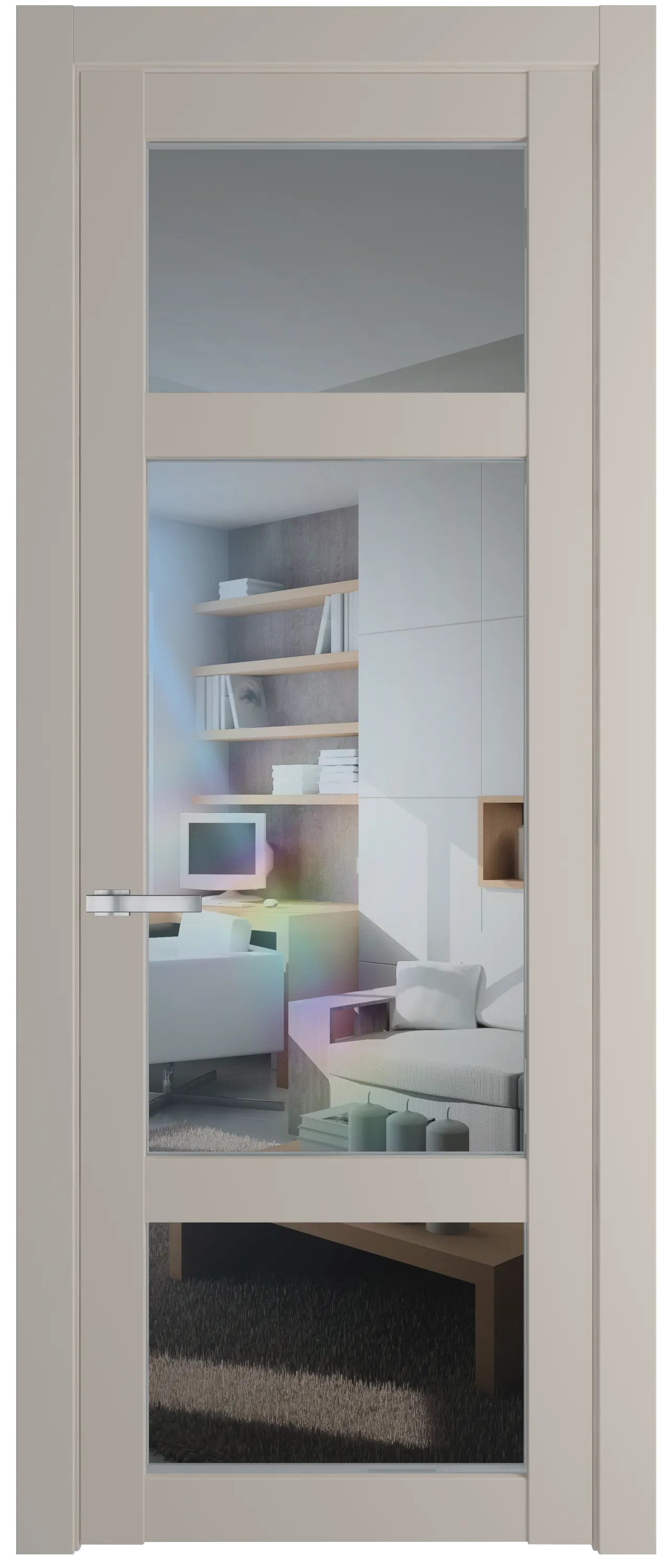 Вставка на ручке в цвет дверного полотна, делает ее особенной – она становится продолжением двери.