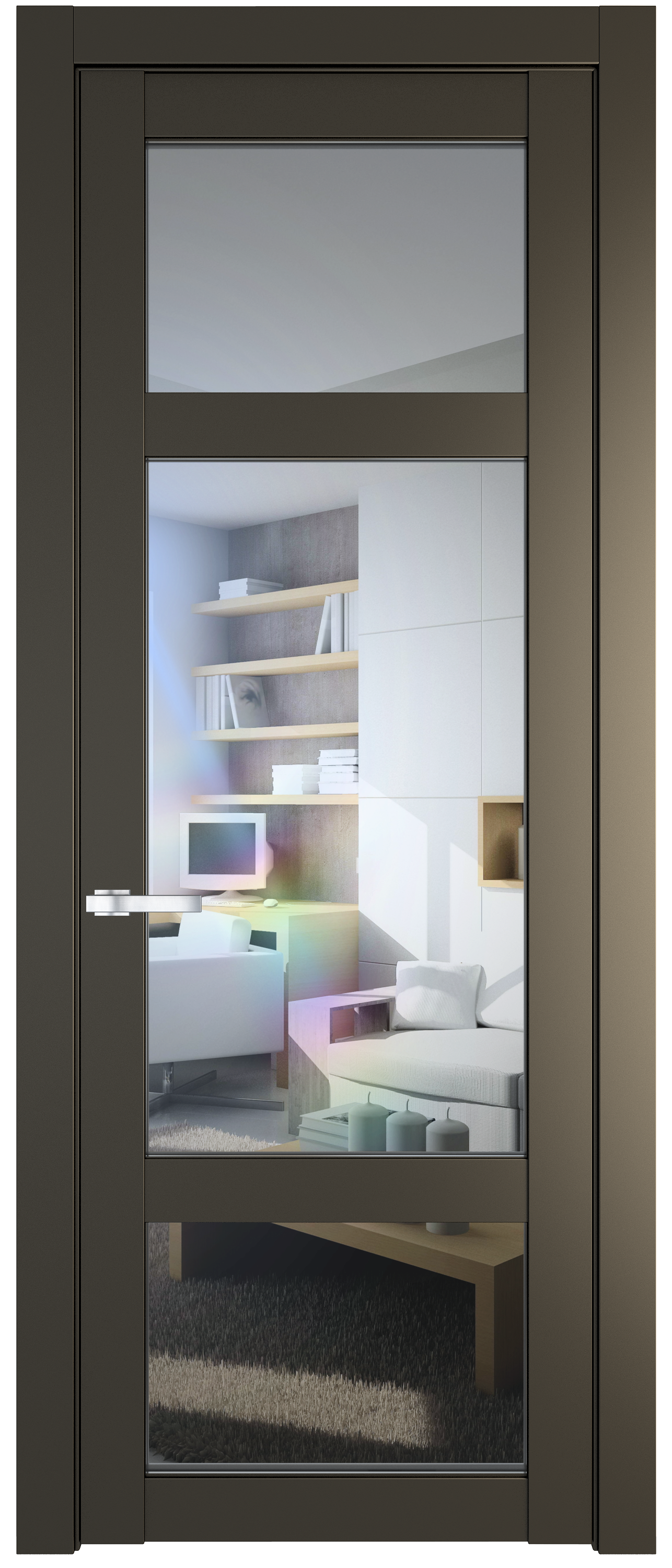 Вставка на ручке в цвет дверного полотна, делает ее особенной – она становится продолжением двери.