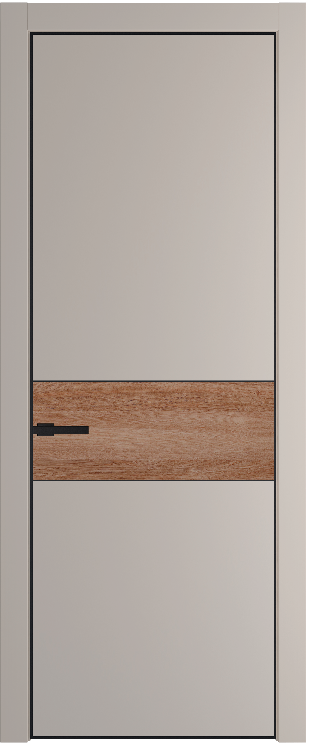 Вставка на ручке в цвет дверного полотна, делает ее особенной – она становится продолжением двери.
