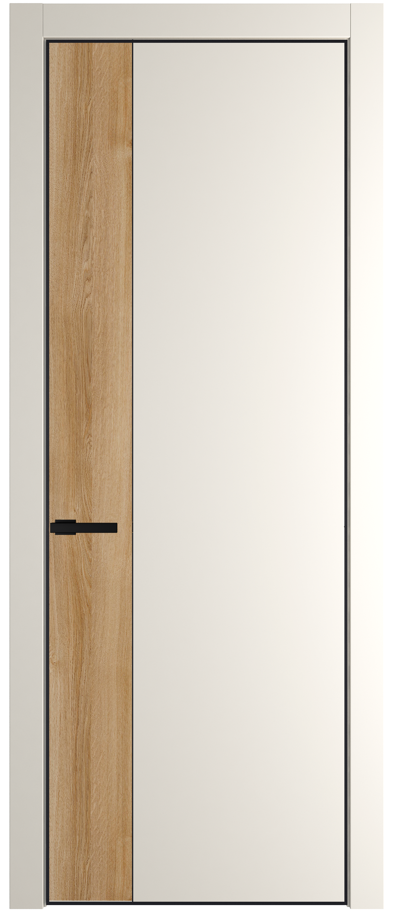 Вставка на ручке в цвет дверного полотна, делает ее особенной – она становится продолжением двери.