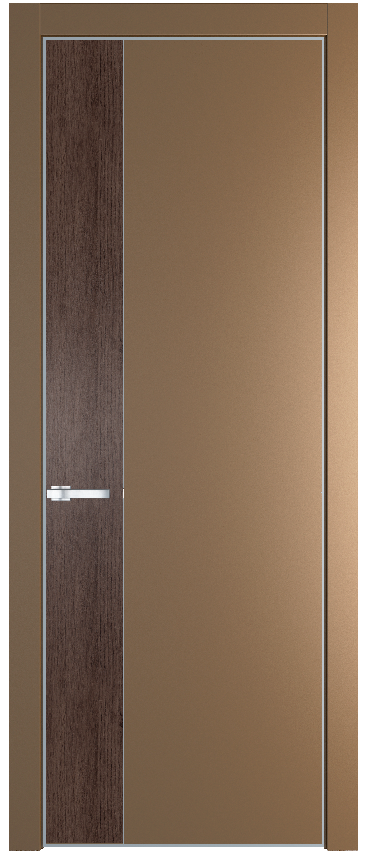 Вставка на ручке в цвет дверного полотна, делает ее особенной – она становится продолжением двери.